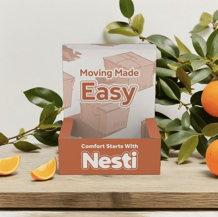 A curated selection of interface screens, branding assets, and product visuals showcasing the NestiBox concept and user experience.